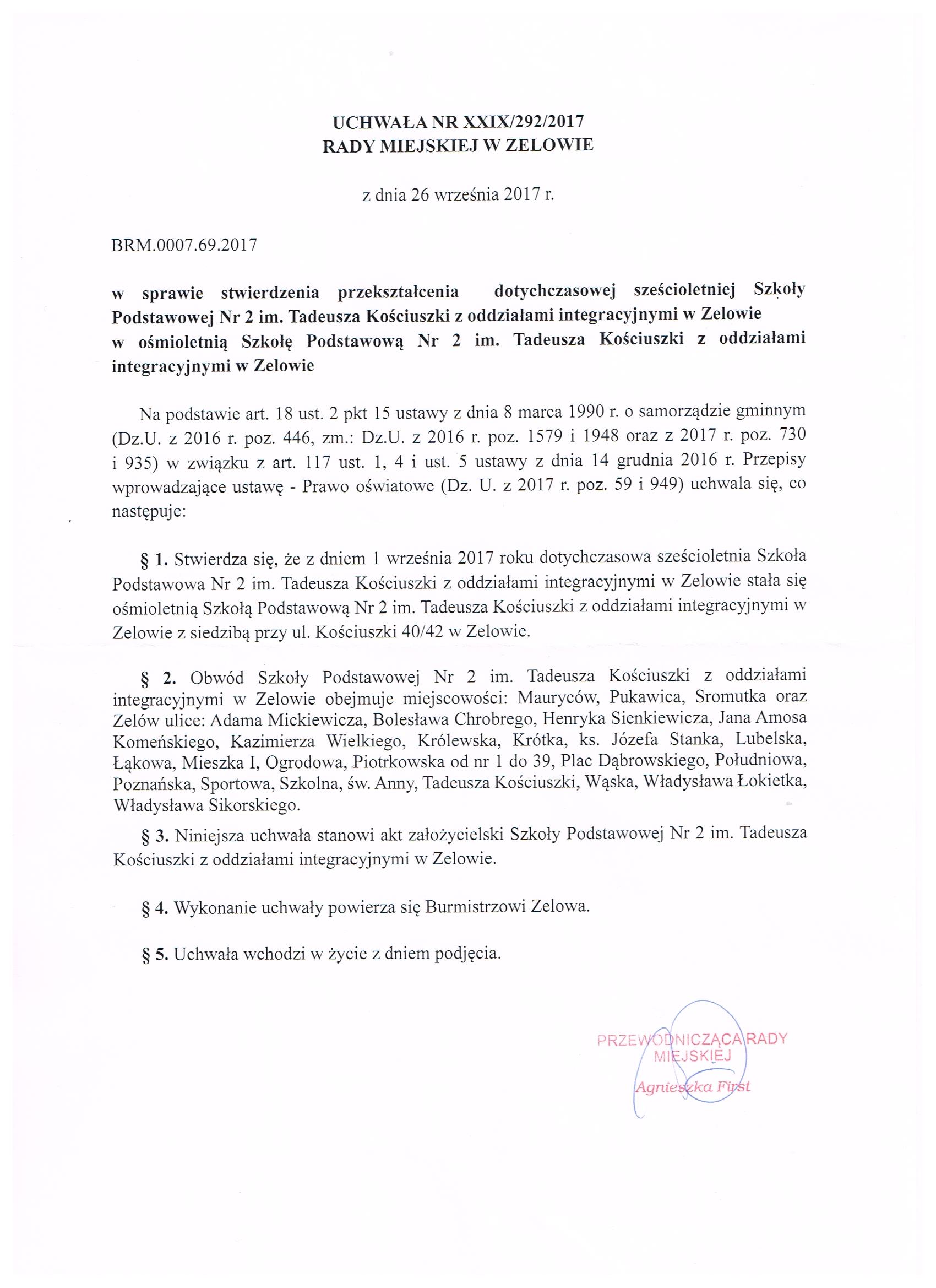 Akt tworzący: Uchwała nr XXIX/292/2017 Rady Miejskiej w Zelowie z dnia 26 września 2017 r.